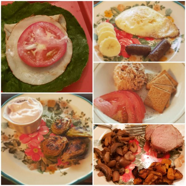 After my doctors appointment, I went to my last phase diet class. It’s basically the same volume wise, but they added a good bit of food that we can eat now. I can have fresh fruits and veggies now. We can still not eat bread, grapes, watermelon, and any meat that is tough. No sausage or bacon because of the high fat content. (Hence why I tried veggie sausage today!) To the left is my five meals for today. We are supposed to eat protein with each meal and then veggies with 3 of those and the other 2 are to be either fruits or starch as the side. We are supposed to get 80 oz of fluid as well as 80-90g of protein. They reduced the requirement of protein drinks down to 20-30 g of protein. When I finish this glass of water I have and drink my protein drink I will have 83 oz of fluid (water, milk, protein drink) and 113 g of protein. Pretty good for my first day on my forever diet!
